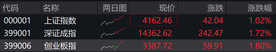 14:13 A股三大指数均涨逾1%,AI应用题材全线爆发,市场近4000股上涨。